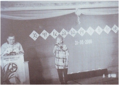 晚宴上各自的负责人讲了话后,还有余兴节目。节目虽然简单,气氛却是一片热闹。值得一提的是几位年青人,我们的后代,有勇气登上台唱了“我们自己的歌”,如:《血染的风采》和《我的祖国》赢得热烈的掌声,掌声并不是来自他们的歌唱得有高水准,而是在於年青的心和老一代的共鸣。就如仁祥说的,我们等这一刻已等了很久。所得这一刻的心愿,就是我们的新一代能靠拢我们,接近我们,年青人的脉搏能和我们年老的协调共鸣,这是我们朋友已届晚年的人生一大美事。我们的友谊队伍在千禧年之后,又一次比较有规模地在美里集合,时间是01-01-200031-05-2000刚好是半年之后。