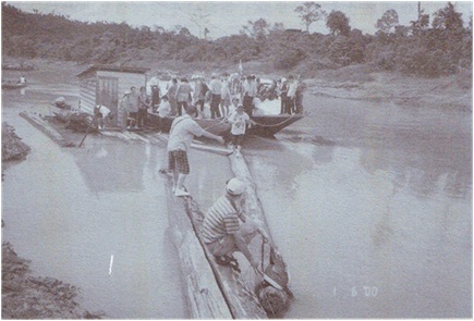 晚上7:30吃晚饭,饭厅是在河对岸,要走铁索吊桥,大人们走起来,摇呀晃的,几乎像是要被弹走似的,头昏得很,过了桥后好一阵,似乎还在摇恍得漂浮似的。年青人还恶作剧,大力走动,使吊桥摇恍得更厉害。小孩对这玩意儿可高兴了,嘻嘻哈哈的玩味着走过。晚餐,茶水是自由的,自己冲泡。有两个大热水壶,还备有茶杯,小茶匙,米禄,茶,咖啡,咖啡精,炼乳等等,自由选泡。饭桌上三菜一汤,家常饭菜,热热腾腾的还算不错。据说,我们住的酒店是中等式的,比上不足,比下有余,所以我们的伙食也是中等的。河下游不远有比较高级的旅店,卖吃的贵得很,有的旅客还特地撑船来我们这里吃。