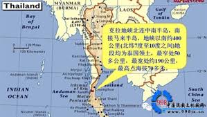 泰国“克拉运河计划” 是指在泰国克拉地峡处挖掘一条沟通泰国湾与安达曼海的运河。地峡最窄处不足100千米,开凿运河基本不需要象巴拿马运河那样调剂水位。计划中要开凿的运河宽400米,水深25米,双向航道,适合远洋大船进出。这条运河一旦修成通航,船只将不必穿过马六甲海峡.