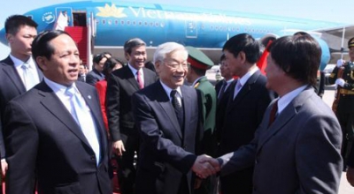 中共中央委员、全国政协副主席、中共中央对外联络部部长王家瑞,中国驻越南大使洪小勇,中共中央对外联络部和中国外交部许多干部前往北京国际机场迎接阮富仲总书记和越南高级代表团。越南驻华大使阮文诗同众多越南在华干部、留学生前往北京国际机场热烈欢迎阮富仲总书记一行。