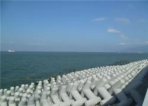 ▼岛外侧安装海浪缓冲桩