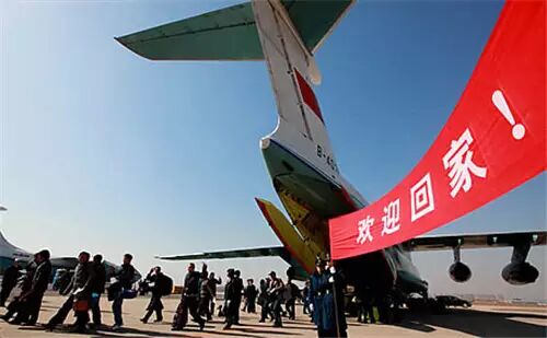 短短的十二天内,中国动用91架次中国民航包机、35架次外航包机,12架次军机、租用外国轮船11艘,货轮五艘,军舰一艘,护送36580位公民安全回家,成功的实现了大撤离!干脆、利落、高效。