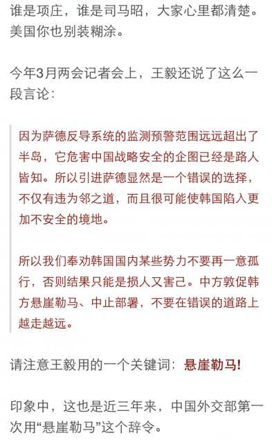 印象中,这也是近三年来,中国外交部第一次用“悬崖勒马”这个辞令。
