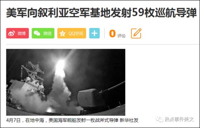 最终,在中国不惜一战的情况下,特朗普在国内外强大的压力之下,再次将目光转到中东,4月7日,美国对叙利亚政府军发射59枚巡航导弹!
