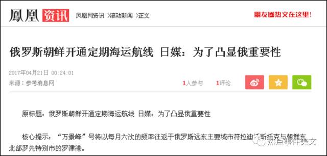 4月21日,在中国的强势表态后,朝鲜和美国“激战”即将缓和之际,俄罗斯决定新开通连接朝鲜的定期海运航线。