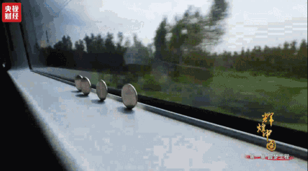 高速行驶的列车上,4枚硬币稳稳立住。中国高铁的平稳、舒适已经被无数网友点赞。