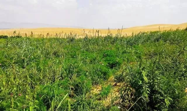 今年以来,科研团队将"沙漠土壤化"生态恢复技术用于内蒙古阿拉善盟乌兰布和沙漠25亩试验地中。经施工改造后的沙体当即固定,并表现出持久的抗风蚀能力。试验地种植了玉米、小麦、糜子、瓜果蔬菜、向日葵、观赏草、乔木灌木等70多种植物,长势旺盛,开花结果。