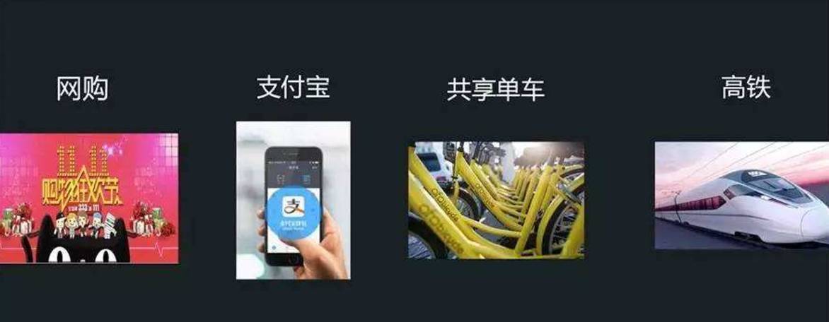 外国媒体评出的中国新四大发明——高铁、支付宝、共享单车和网购,中国互联网公司的领头羊阿里也撑起了半边天。