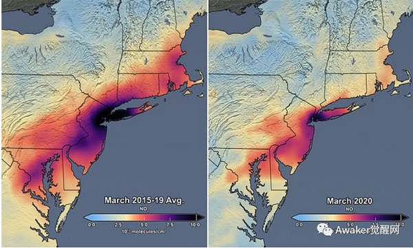 NASA数据显示,由于冠状病毒大流行,数百万人处于封锁之下,美国东北部地区的空气污染下降了30%。