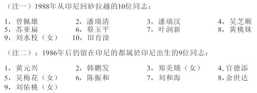 谈判结束,有10位(注一)战友於1988年从印尼回到砂拉越,其余的9位(注二)於1986年后仍居留印尼。西部的北加人民游击队经过12年的坚持斗争,终于结束武装斗争。