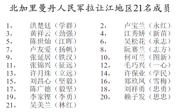 (附录五) 北加里曼丹人民军拉让江地区21名成员
