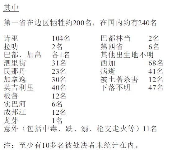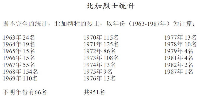 在此,我们向所有为武装斗争作出贡献的同志们和人民群众表示敬意和谢意,并对为此而英勇牺牲的近千名烈士(附录七)们表示深切的悼念!
