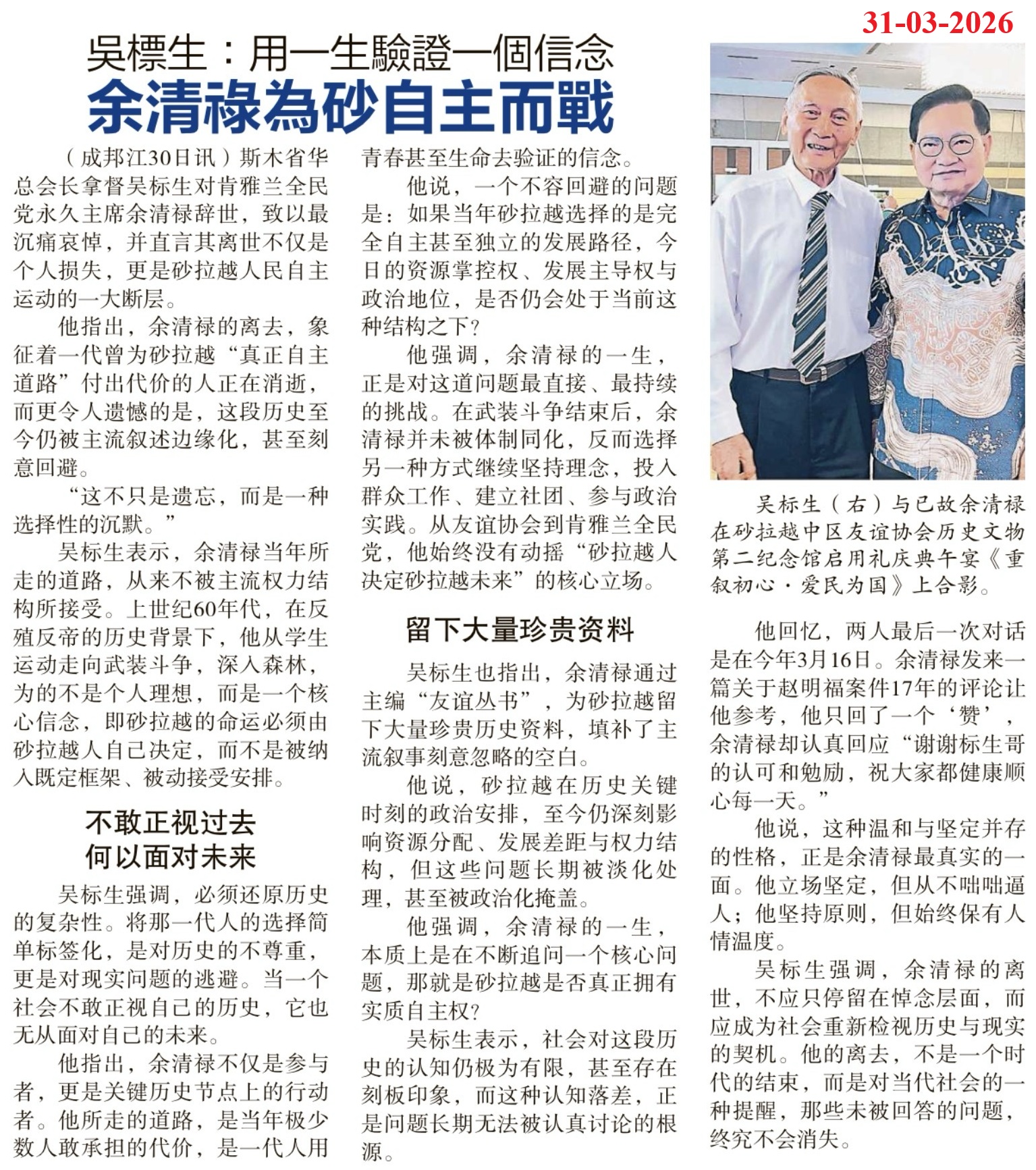 砂拉越人民的好兒子一余清禄