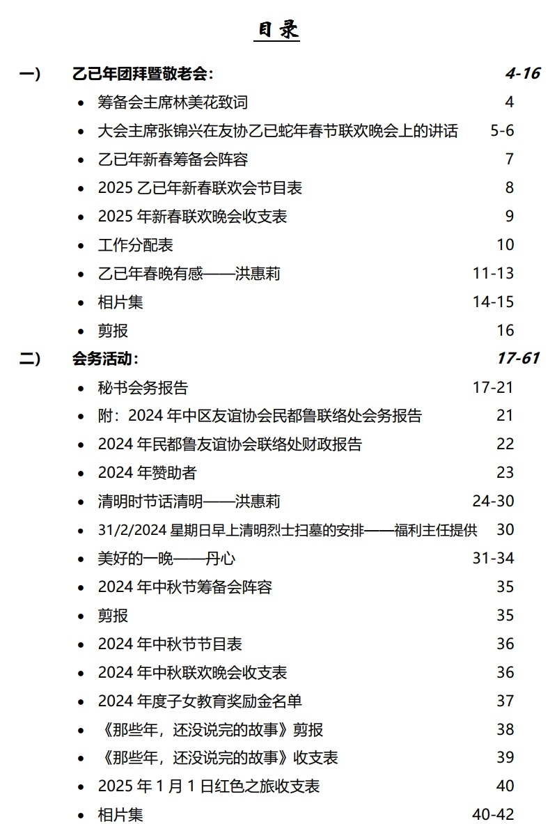 内容:封面、目录、乙已年团拜暨敬老会 1