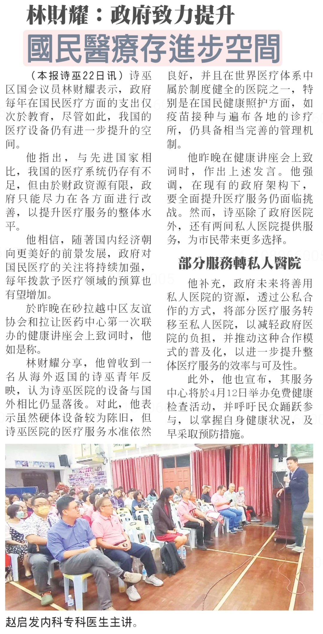 • 贵宾:YB林财耀致词