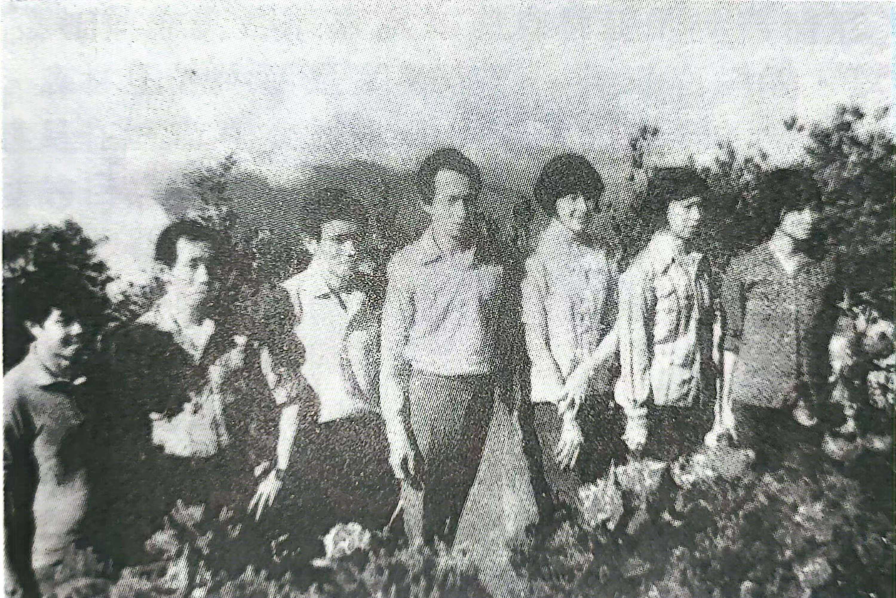(注一)1973年4月10日,我一武装工作队在过 Kemena河时,由于被坏蛋陷害,被政府军袭击,牺牲了六位。他们是:刘殿悦(盛益),丹章公集人、张自卿(坚强)诗巫保由路人、刘世广(小平)泗里街挪甲人;还有三位皆是芦仙人:吴春娇(学勇),吴培华(吴虎)以及刘延扬(勇进)。