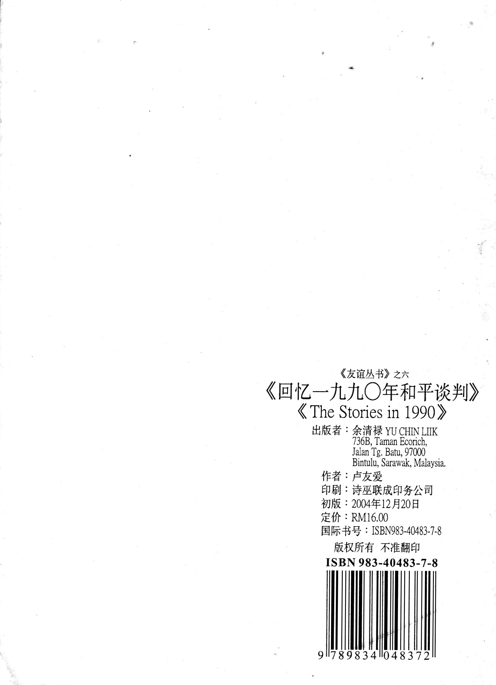 本书作者亲历了那年代的洗礼,也参与了1990和平谈判的全过程。在本书中详述了1990年事件的始末,不少篇幅皆是未经公布的第一手资料,是一本具可读性的历史纪实书。