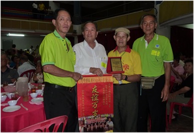 美里友谊协会李玉生主席、刘友光副主席在23日晚会上赠送锦旗给主办当局芙蓉老友联谊会,锦旗上写:“友谊万岁”
