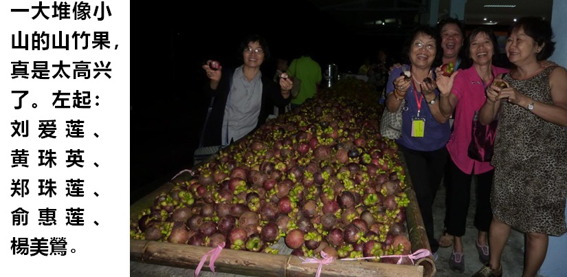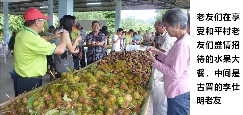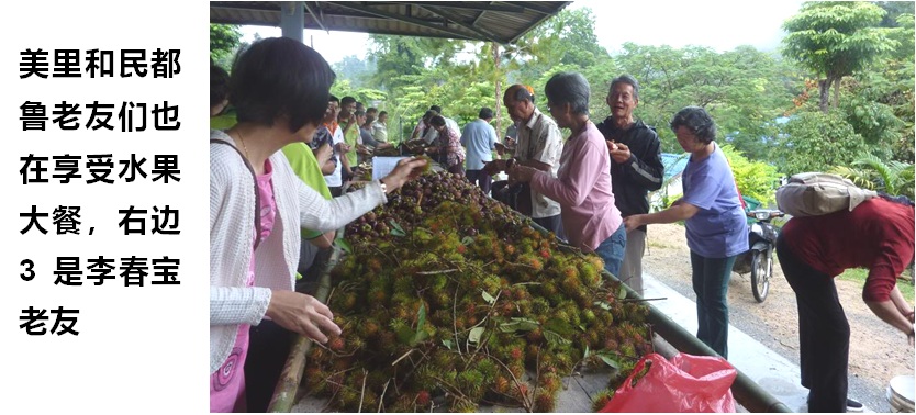 这里,我们大家都非常感谢勿洞和平村、邦朗和平村、合艾老友联谊会、21世纪联谊会老友们,他们热情出钱出力招待了我们24日晚餐、25日午餐、25日晚餐。这一餐餐丰盛的餐饮,还有特别的连日水果大餐,让107位老友深深铭记在心,谢谢热情的老友们了!