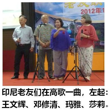 印尼5位老友玛雅、莎莉、邓修清、陈瑞林、王文辉(上图中)和老友们在23日晚宴上
