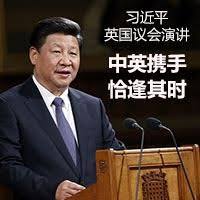 习近平强调,中英虽然地处亚欧两端,却长期彼此吸引。新中国成立以来,两国关系创下了多项“第一”。英国是第一个承认新中国的西方大国,也是率先同中国建立全面战略伙伴关系的欧盟国家;是除香港外最大人民币境外交易中心,也是吸引中国留学生、开办孔子学院最多的欧盟国家。英国还是首个发行人民币国债的西方国家、最早申请加入亚洲基础设施投资银行的西方大国。中英越来越成为你中有我、我中有你的利益共同体。中英关系发展的源泉来自两国人民的相互理解、支持、友谊。我们今天所处的时代,是以和平与发展为主题的时代,也是各国同舟共济、携手共进的时代。在这样伟大的时代,站在全面战略伙伴关系的新起点,中英两国携手,恰逢其时。