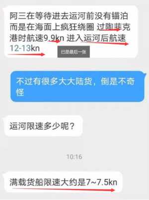 没进运河,航速还正常,进了运河,反而违规提高了航速。