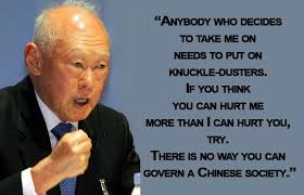 李光耀喜欢搞“口不对心”的事,明明是“英文至上”,却把马来语定为“国语”;明明是推崇“西方文化”,却通过英文搞儒家思想;明明是“后悔没早点关闭南洋大学”,却假惺惺说什么“如果时光能够倒流,就不会关闭华校”;明明是最痛恨“南大精神”,却说什么“如果失去南大精神,新加坡就会有麻烦”这种言不由衷的话!
