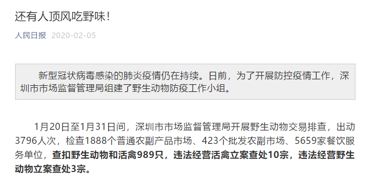 这次疫情中,他们是最先惨死的人,那也是咎由自取,他们的亲人、朋友首当其冲会被感染,更可惜了无数被他们害惨的无辜老百姓,更令人震惊的是,据人民日报消息,眼下仍有人吃野味。
