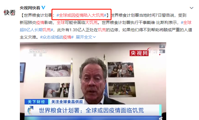 前几天,联合国世界粮食计划署发布了一份《2020年全球粮食危机报告》。这份报告揭露了比疫情更加残酷的现实。